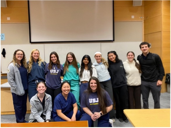 The class of 2027 just recently finished their fall semester of didactic! They finished their medicine course and have been practicing their physical exam skills, wrapping up the semester with standardized patient physical exam simulations. Some highlights of the semester were PA week, where students enjoyed a ConnAPA sponsored breakfast and some even traveled to New York City to join hundreds of other PA Students on the Today Show. The Holiday Dinner was a fun way to wrap up the year with the faculty serving the class dinner!. They head into the spring semester refreshed from a long winter break, ready to take on courses such as Surgery & Emergency Medicine, OBGYN, and Pediatrics.